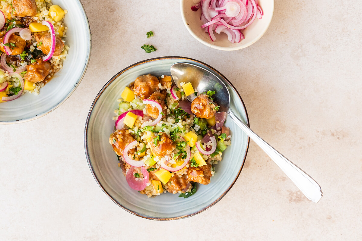 The small salads are the latest innovative solution to the more and more convenient lifestyle consumers tend to have. These salads are the ideal solution if you have little time and still feel like having a tasty lunch or snack. The combination of ingredients makes the salad often very filling. Also very suitable to take with you on the road. Our most recent developments include the pearl couscous Pesto and the Couscous Hummus, but also our small salad bowls with Sticky Chicken or Salmon are trendy! Upon request we can make any possible variant to meet the consumer demand.